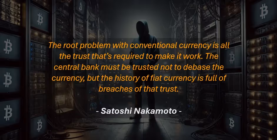 Satoshi recognised that one of the biggest flaws of fiat currency is the trust required for it to work.