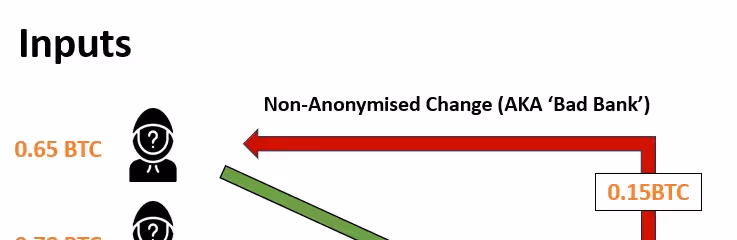 (Please note this is a simplified example. The change wouldn’t be exactly 0.15 BTC as there would be miners’ fees and any fees charged by the mixing service deducted).