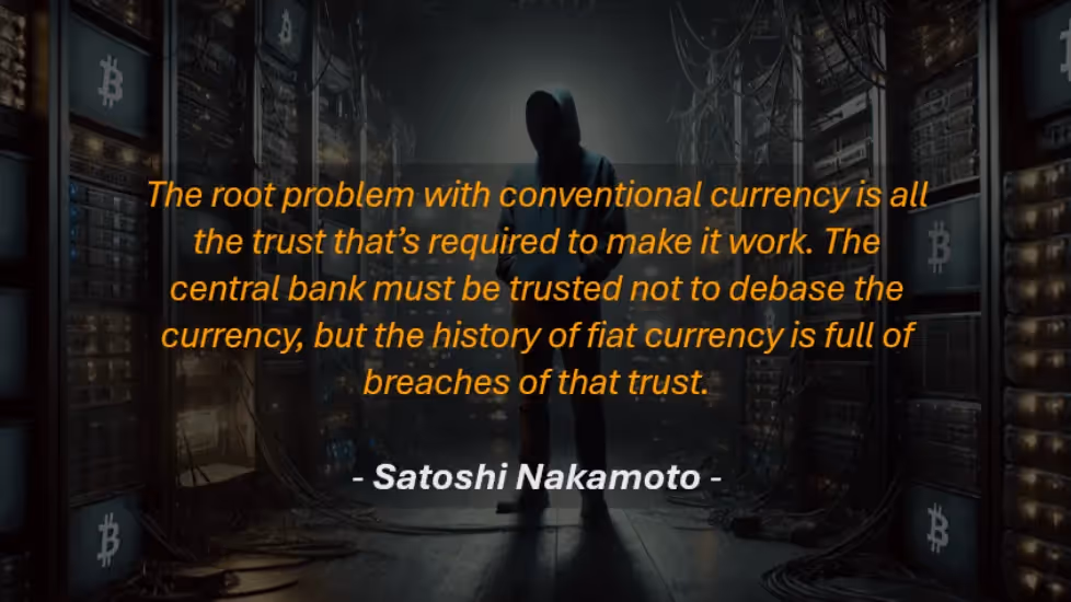 Satoshi recognised that one of the biggest flaws of fiat currency is the trust required for it to work.