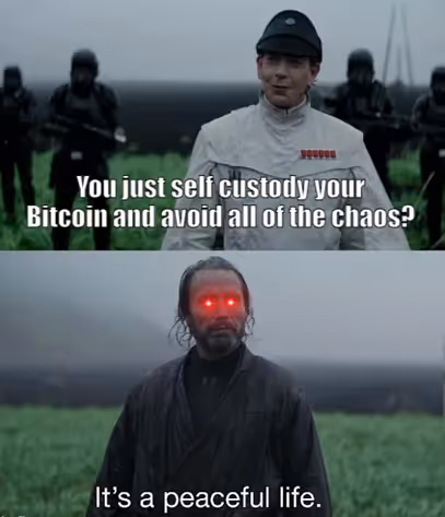 Worse still, a lot of content now actively promotes a fiat mindset, suggesting you buy Bitcoin proxies, use Bitcoin banks and custodians, and leverage your Bitcoin by using it as collateral for fiat loans or earning yield.