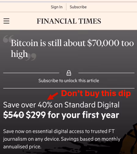 The Financial Times already came out swinging this week with their latest poorly researched hit piece titled “Bitcoin is still about $70,000 too high”, written by Jemima Kelly.