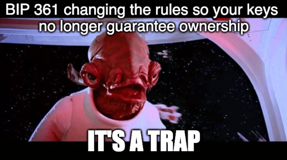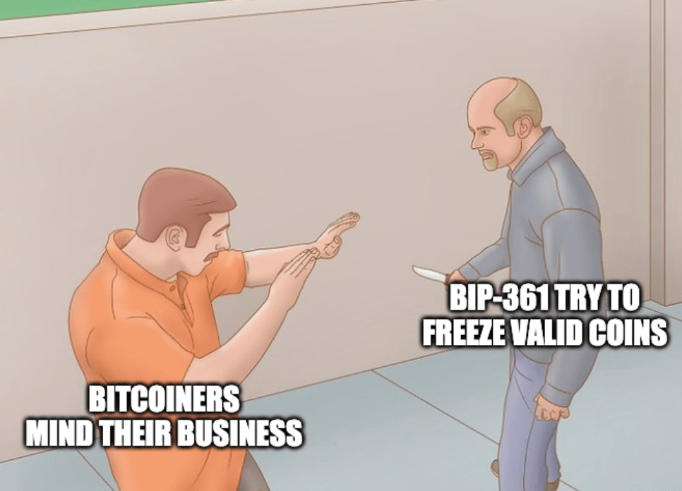 Bitcoin was built so that no government, no central bank, and no authority can freeze your money or render it inert by decree. BIP 361 proposes doing exactly that.