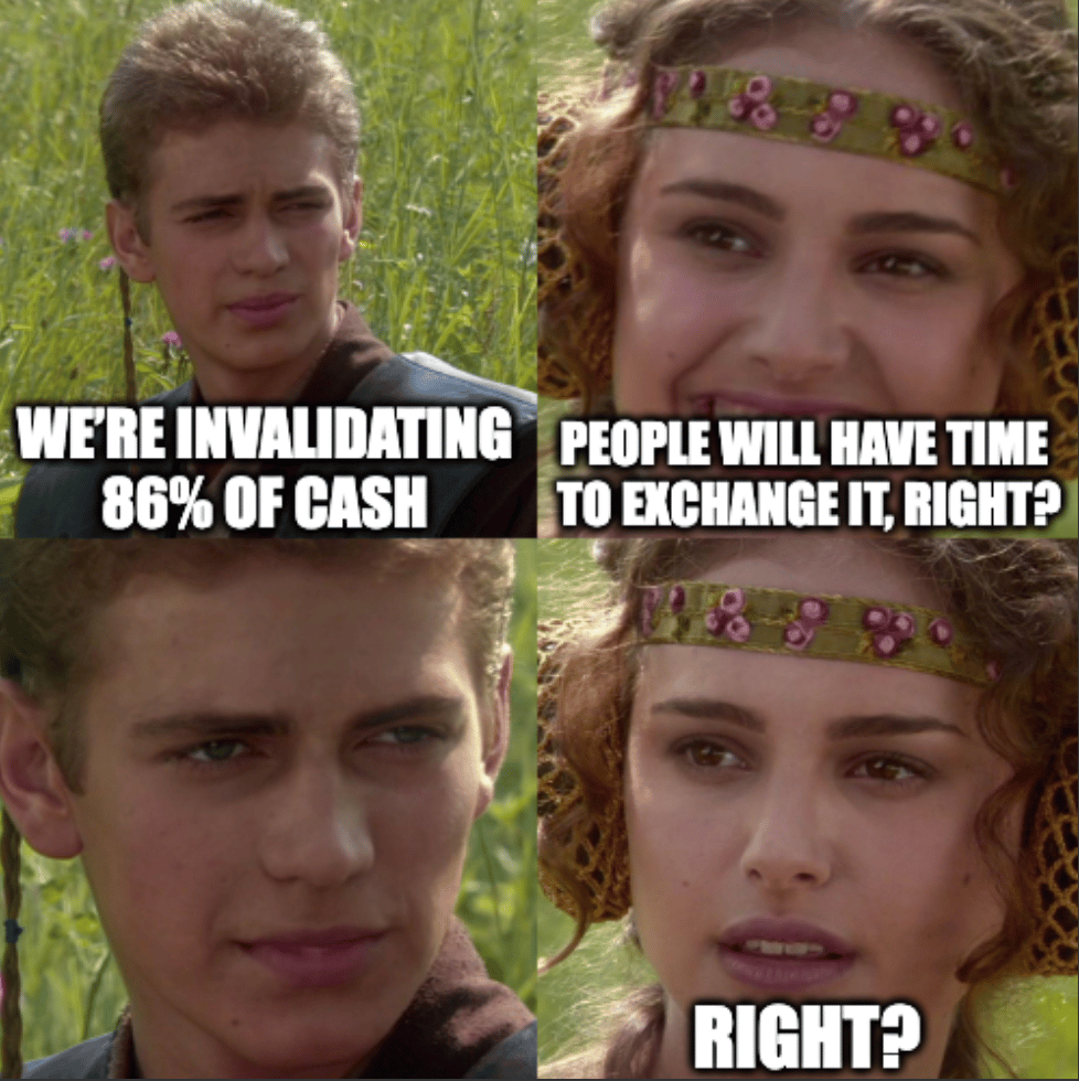 With the stroke of a pen, the state rendered most of the nation’s money worthless. They graciously gave people roughly 50 days to exchange it. In a country where millions lived cash-first and hand-to-mouth, that window was a cruel joke.