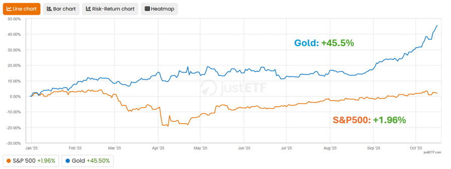 So far this year, Gold has also significantly outperformed the S&P 500. Despite being in one of its strongest bull runs in decades, the S&P 500 is only up ~2% compared to Gold’s ~45%.