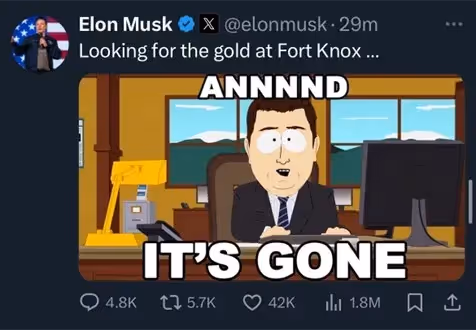 But for fun, let’s pretend it’s because Elon did actually audit Fort Knox…